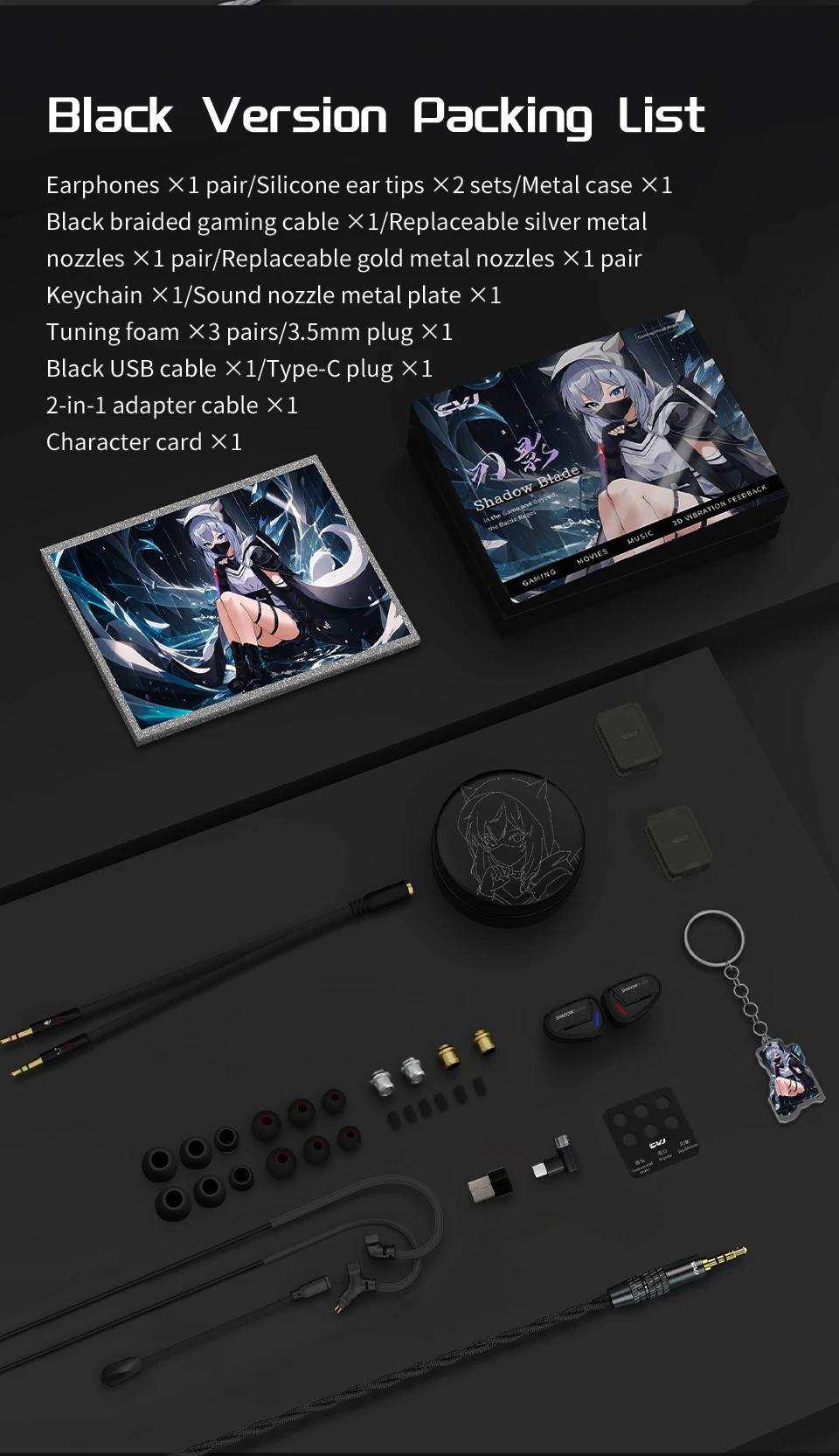 CVJ Shadow Blade In Ear Earphones 1DD+1 Vibration Switch Adjustable Gaming ports in-ear typec Hifi Headphones konoka Mermaid2